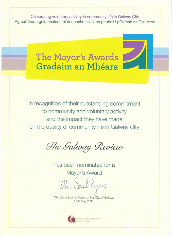 The Galway Review, since its digital birth, in November 2012 has been amassing a global following and has now reached a readership close on 158,000 worldwide, particularly in the English speaking world. That is no mean achievement in such a relatively short space of time and when you consider that the team at the Galway Review carry out their work voluntarily and often at their own expense, it is an achievement that should be applauded and supported. I am delighted to be at the launch of this book as part of the Cúirt Festival festivities, because it is the joint efforts of organizers such as Cúirt and the Galway Review that enhance Galway’s reputation and place on a literary world map. I would go as far as to say Writers’ Week in Listowel – watch out! – Galway will soon claim the literary laurels, if it has not done so already!