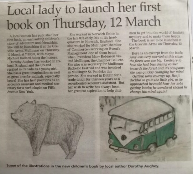 Mayor of Mullingar, Michael Dollars will be doing the honours at the book launch of Dorothy Aughey’s book, “HOLLY BUSH FOREST”.