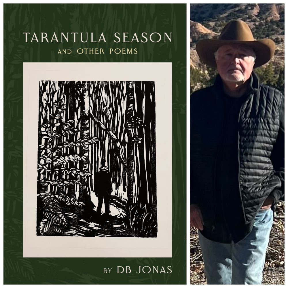 Our Velocity is the title of the introductory poem in Tarantula Season and Other Poems, a first collection by the New Mexico poet DB Jonas. In this opening piece, we find ourselves in motion at high speed straight away, moving through time, heading in the direction of some uncertain mark, possibly in the direction of origin itself, the centre of space-time, into the precincts of The Big Bang. Yet, as this poem’s first lines tell us, we are unaware of such cosmic velocity, the speed of our lives, the breeze it ought to make, for “You cannot see it moving / over the slick-rock face,…// You cannot feel it lift / the nape-hairs of your dream”. And try as we may, we cannot manage to grasp this velocity and its source: