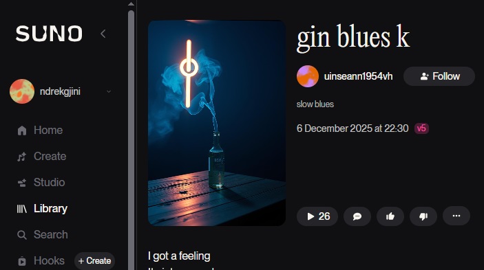 BEST OF THE MONTH, From Lyrics to Songs, Poetry Vincent Holmes – GIN BLUES Date: 11 Dec 2025Author: Admin 0 Comments Click here to listen to the song… Rate this:Share this: Click to share on X (Opens in new window) X Click to share on Instagram (Opens in new window) Instagram More Click to share on Facebook (Opens in new window) Facebook Like Loading... Related