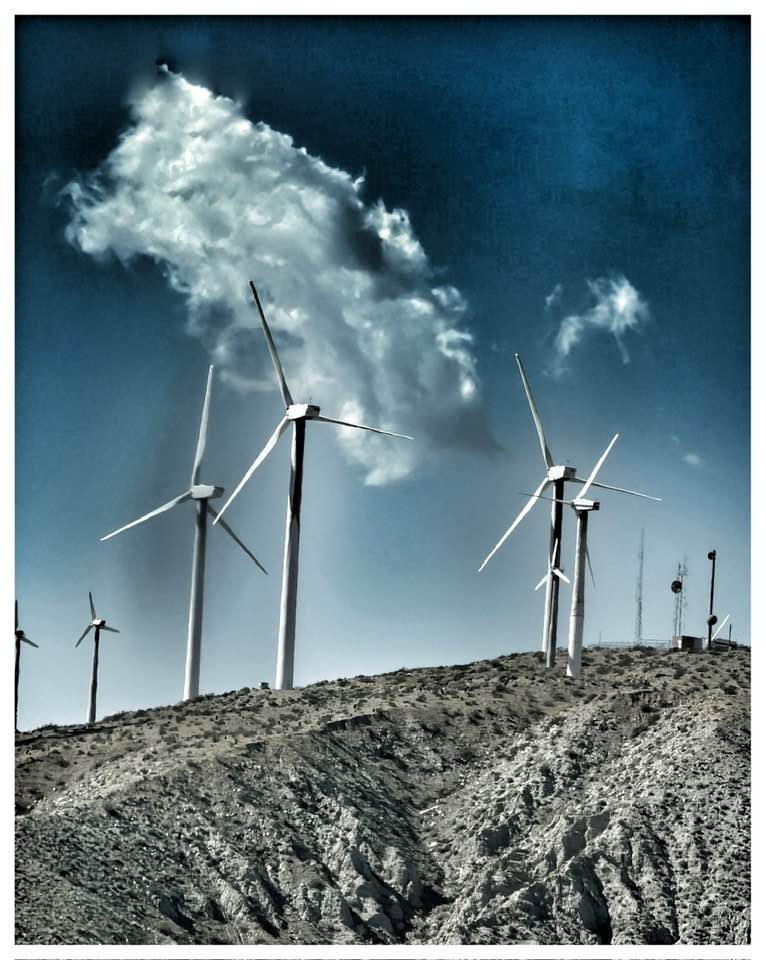 pointing at the windmills.