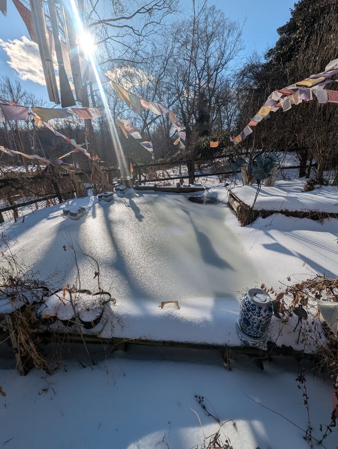 Little pond, snow covered still,